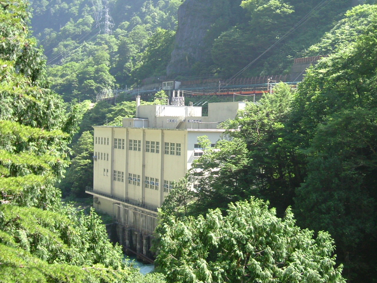 昭和15年に建設された鉄筋コンクリート造の発電所である。外観正面は柱をピラスター状にして垂直性を強調し、陸屋根にはわずかに庇を突出させる。急峻な河川の断崖地形を上手く活用し、デザイン的に工夫のみられる建造物である。高熱地帯や泡雪崩を克服し建設された歴史的な建物としても価値がある。