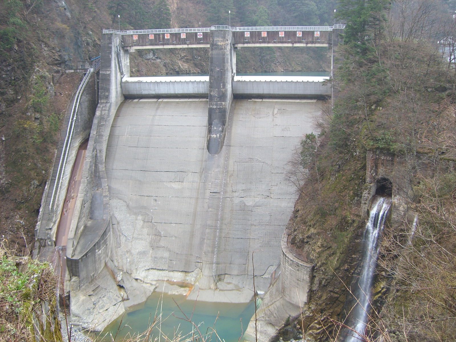 日本の代表的建築家・山口文象の設計による昭和11年竣工の重力式コンクリートダムである。越流部からエプロンにかけての流水曲面と前すぼまりの導流壁曲線や二条の流雪路と一条の取水口排砂路を円弧のデザインでまとめるなど、厳しい自然条件を「用」と「強」だけでなく、「美」にまで昇華しながらまとめあげられた特徴的で見どころの多い歴史的構造物である。付随する沈砂池のデザインにも造形的な見どころが多い。